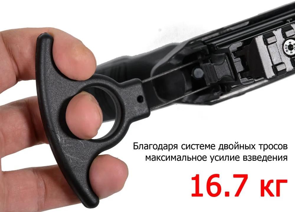 • Очень высокая скорость стрелы среди арбалетов-пистолетов