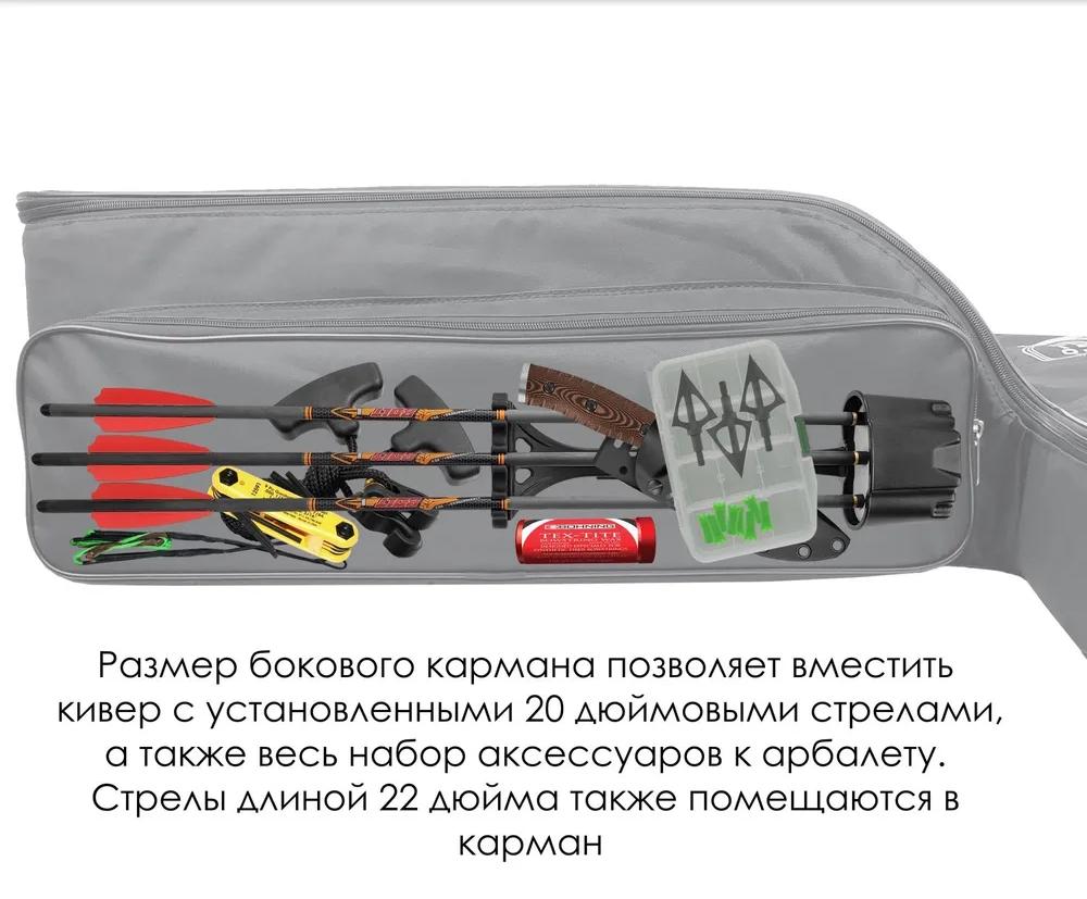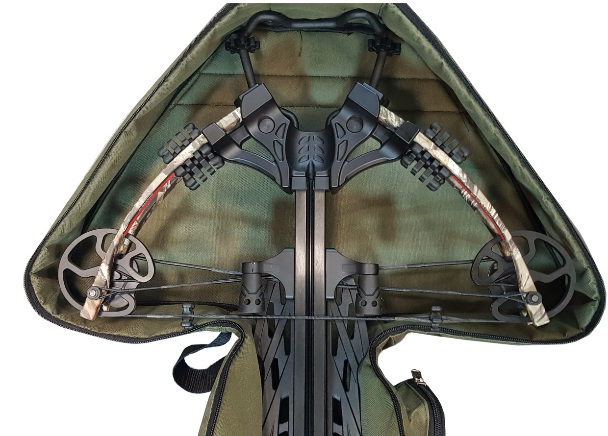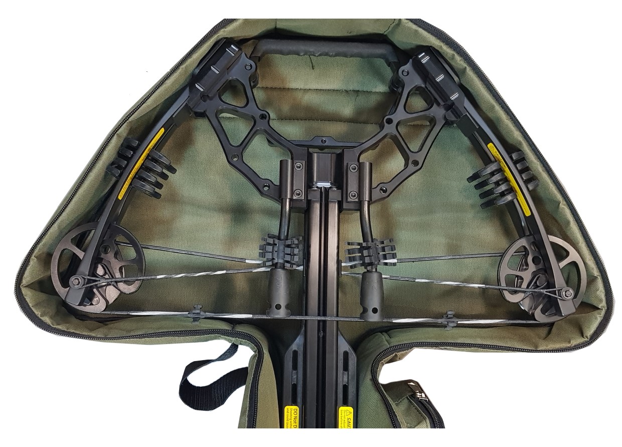Чехол для блочного арбалета в сборе Compact. Чехол подходит для современных блочных араблетов с узкими плечами. Арбалет помещается в чехол в собранном виде вместе с прицелом. Есть карман для стрел, а также лямки для ношения на плече. Подходит для блочных арбалетов типа:Жнец 370-410, Блейд, Гильотин 370- Х, МК ХВ 56 - 58 65