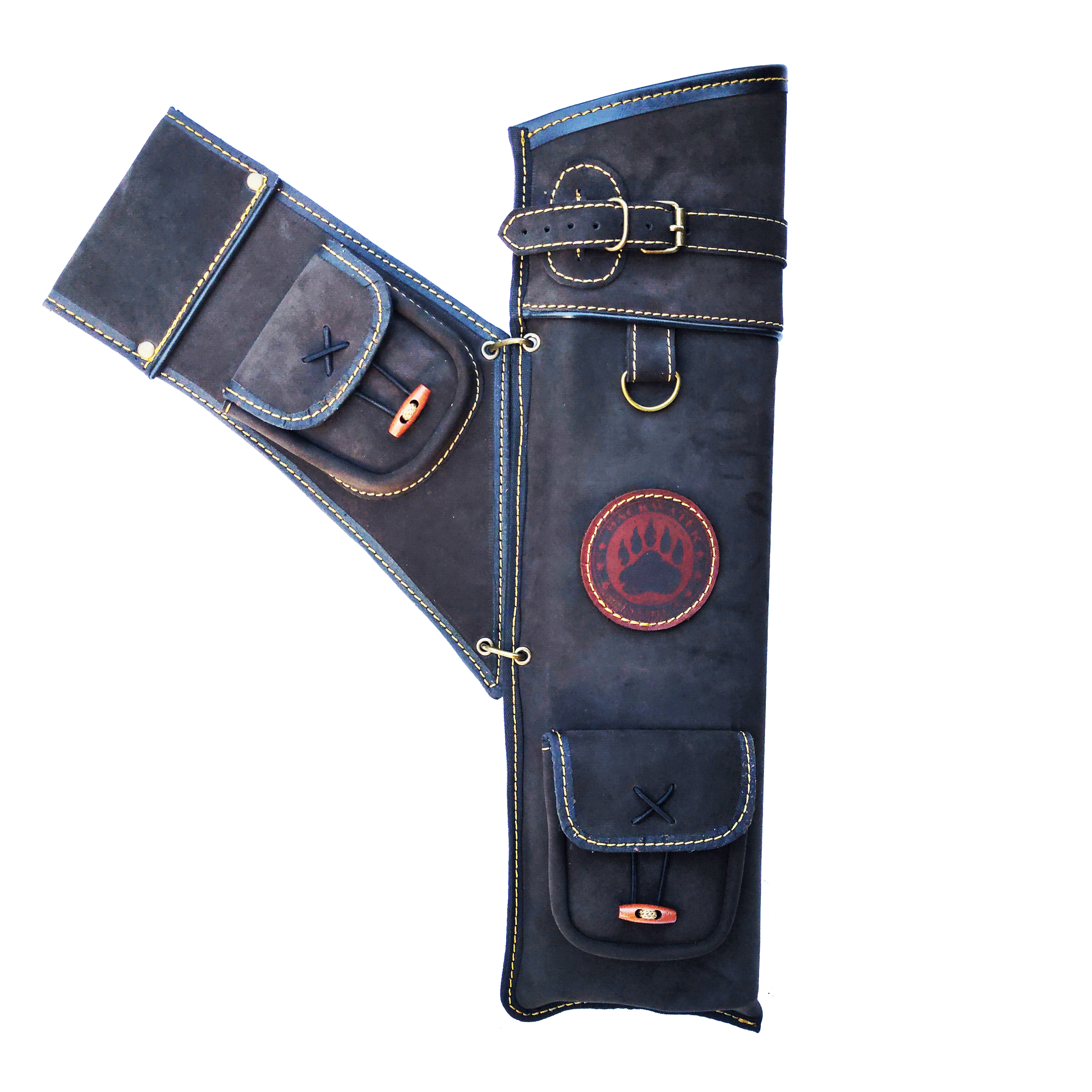 Колчан подвесной на ремень из натуральной кожи с двумя объёмными карманами, отдельным улучшенным подвесом, усиленным креплением под ремень, и четырьмя трубками