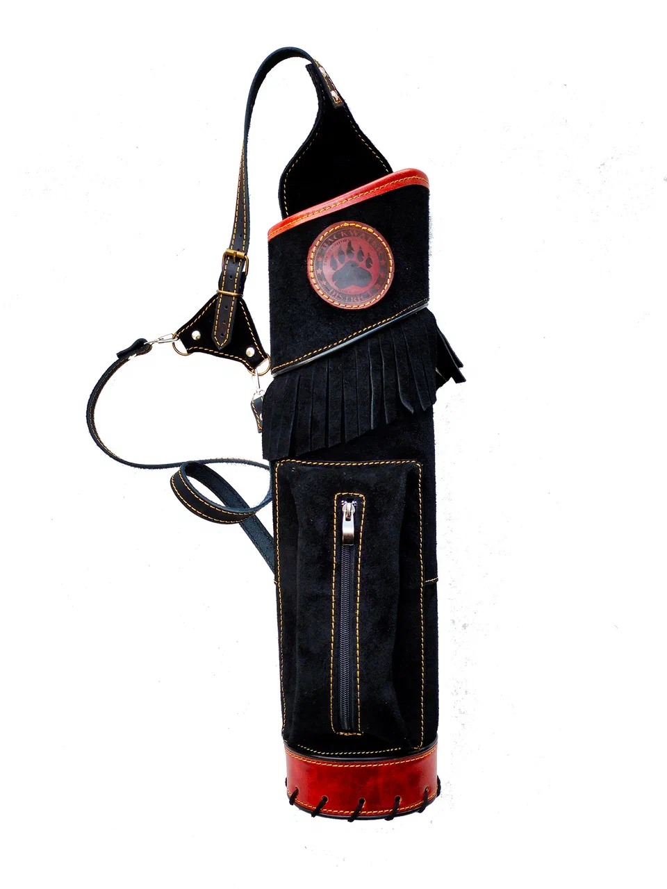 Колчан заплечный, с объёмным карманом для аксессуаров, трехточечные крепления, Натуральная кожа, нубук, пирография