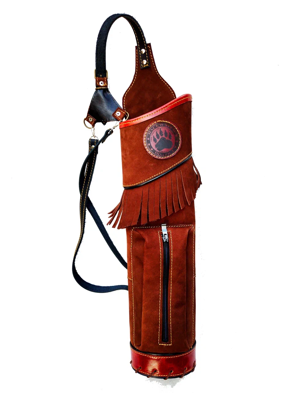Колчан заплечный, с объёмным карманом для аксессуаров, трехточечные крепления, Натуральная кожа, нубук, пирография