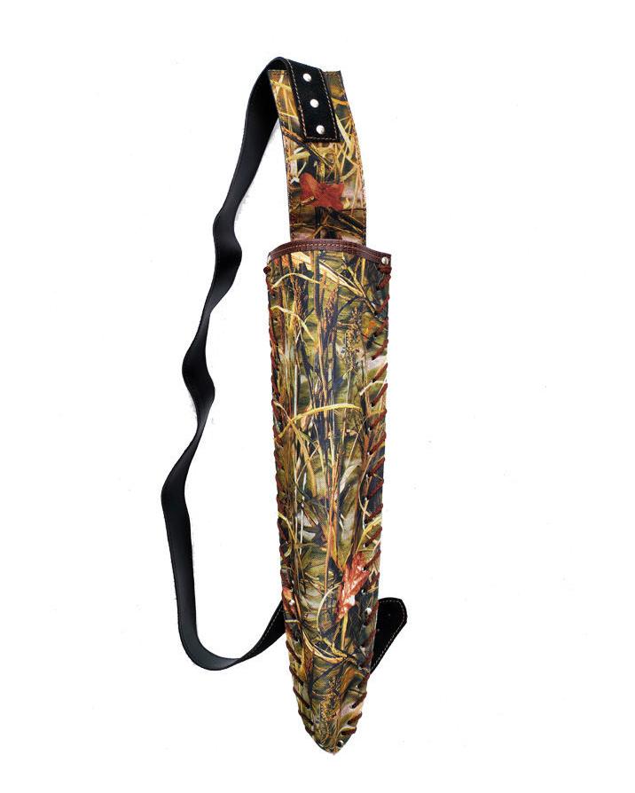 Заплечный Колчан Шатун Камо, Oxford ПВХ, ремень кожа, ручное плетение шнуром, жесткий каркас. Одна лямка с регулировкой. Вместимость от 10 до 20 стрел.