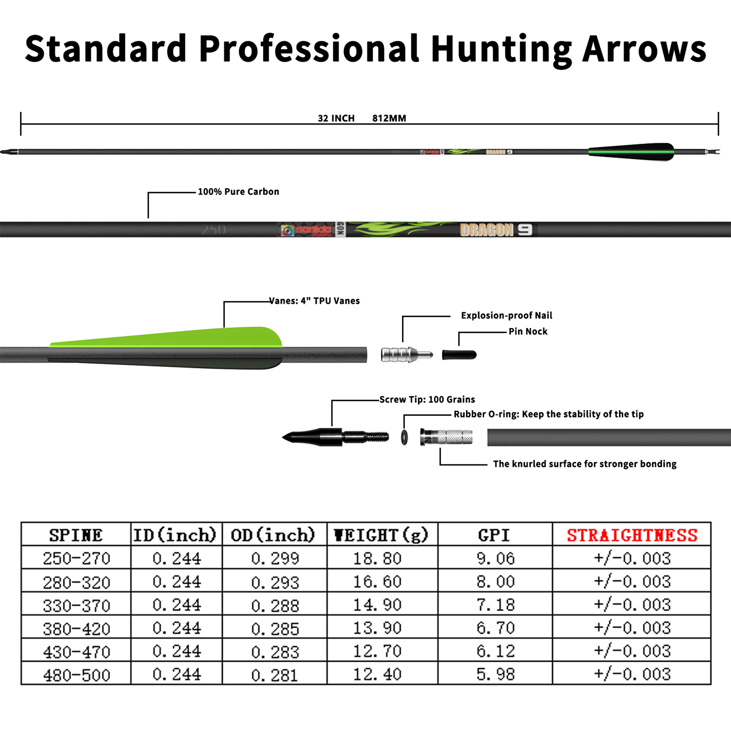 Премиальные карбоновые охотничьи стрелы Sanlida Dragon 9