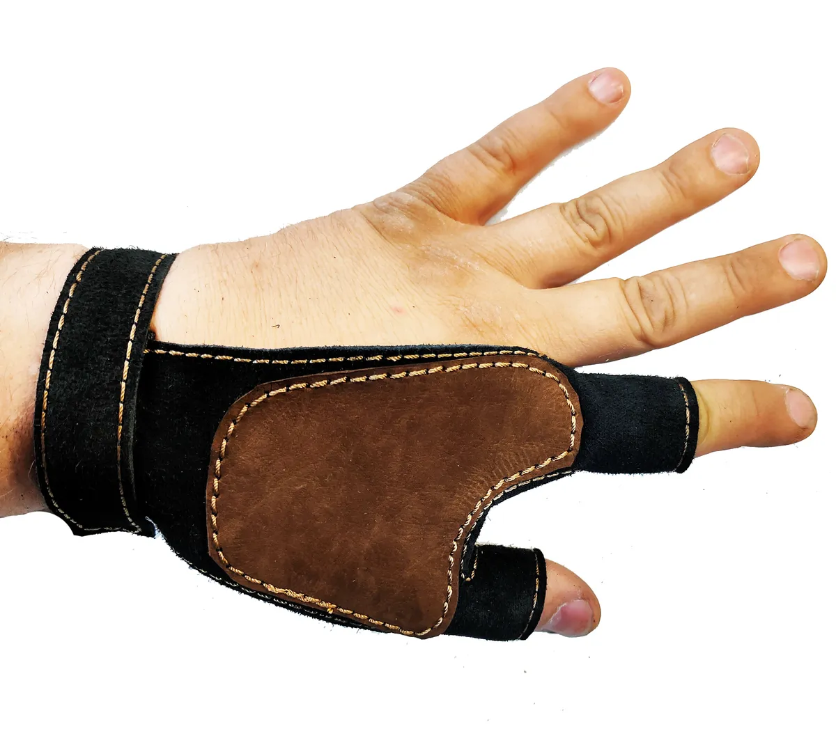 Мужская перчатка на левую руку для стрельбы из традиционного лука не имеющего полочки для стрелы, подойдёт для азиатских, английских луков. При такой перчатке оперение стрелы не травмирует кисть при выпуске, и увеличивает срок службы натурального оперенья на стреле. Фиксируется на руке с помощью ремешка на липучке. Натуральная кожа, замша, велюр, нубук. Заходите к нам в профиль, у нас много аксессуаров из кожи , (и не только) для лучников и арбалетчиков.