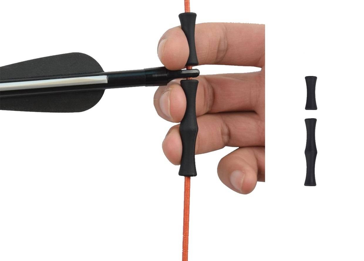 Защита пальцев устанавливается на тетиву детских луков или взрослых луков с низкой силой натяжения. Служит для защиты пальцев от натирания о тетиву в процессе стрельбы. Состоит из двух частей и рассчитана на классический трехпалый хват. Позволяет взаимодействовать с тетивой, не используя перчатку или напальчник.