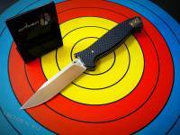 Рукоять выполнена из G10. Нож открывается особым, гравитационным способом – при сдвиге левой накладки рукояти вверх. Освобожденный от удержания замком клинок встает на свое место и надежно фиксируется. Чтобы закрыть нож, необходимо отодвинув накладку рукояти повторно. Этот способ напоминает систему открывания германских десантных ножей времен Второй Мировой войны.