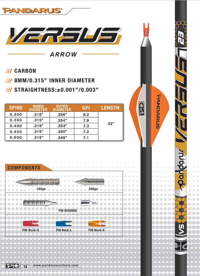 Зимние толстые стрелы Pandarus VERSUS - с внутренним диаметром 0,315 дюйма 8 мм, которые являются карбоновыми стрелами максимального диаметра в мире для стрельбы из лука. Они изготовлены из высокопрочного углерода в усиленной конструкции, что соответствует тонкой толщине стенок, при высокой жесткости, они идеально подходит для соревнований в помещениях.
