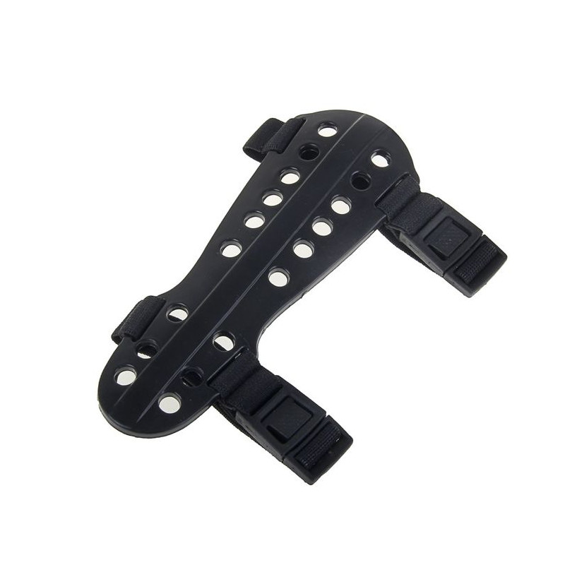 Пластиковая крага №1 - это защитное приспособление, которое лучник одевает на предплечье, чтобы защитить руку от удара тетивой. Удар происходит, если взяться за рукоять лука неправильно.